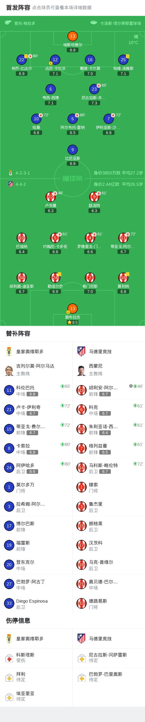 北京时间3月1日西班牙足球甲级联赛 联赛 第26轮,皇家奥维耶多主场对阵马德里竞技。上半场奥布拉克屡次救险,下半场巴埃纳破门,阿尔瓦雷斯绝杀。最终比分皇家奥维耶多 0-1 马竞。