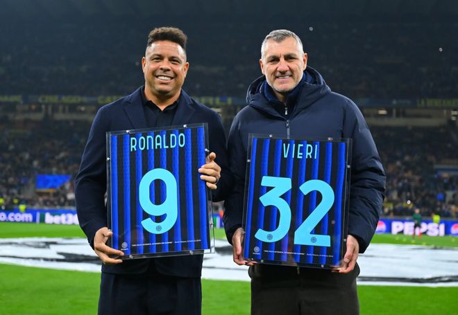2025/26赛季欧冠淘汰赛附加赛次回合开赛前,蓝黑军团球迷有幸再次见证两位传奇维埃里和罗纳尔多并肩出现在梅阿查。当他们重返故地,目光再度投向看台时,这一刻成为永恒的经典。