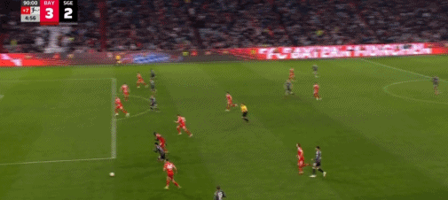 第86分钟,基米希传出刀山球,金玟哉将球踢到卡利穆恩多身上弹进球门,拜仁3-2