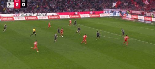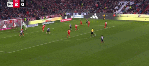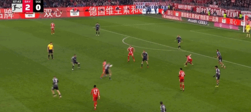 第20分钟,斯塔尼希奇摆渡,凯恩头球破门,拜仁2-0法兰克福