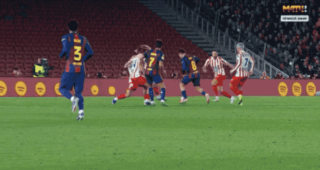比赛一开场,巴萨就把节奏拉到极限。第14分钟,拉菲尼亚抢断后的低射偏出,吹响进攻号角;随后费兰·托雷斯的弹射、亚马尔外围劲射被穆索飞身扑出,蓝红军团的攻势一浪高过一浪,不断冲击着床单军团的后防,短短20几分钟,巴萨轰门高达7次之多;西蒙尼直接扔出大巴车,坚决打反击。