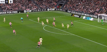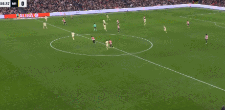 第68分钟,佩德里送出斜塞,亚马尔内切兜射破门!毕包0-1巴萨