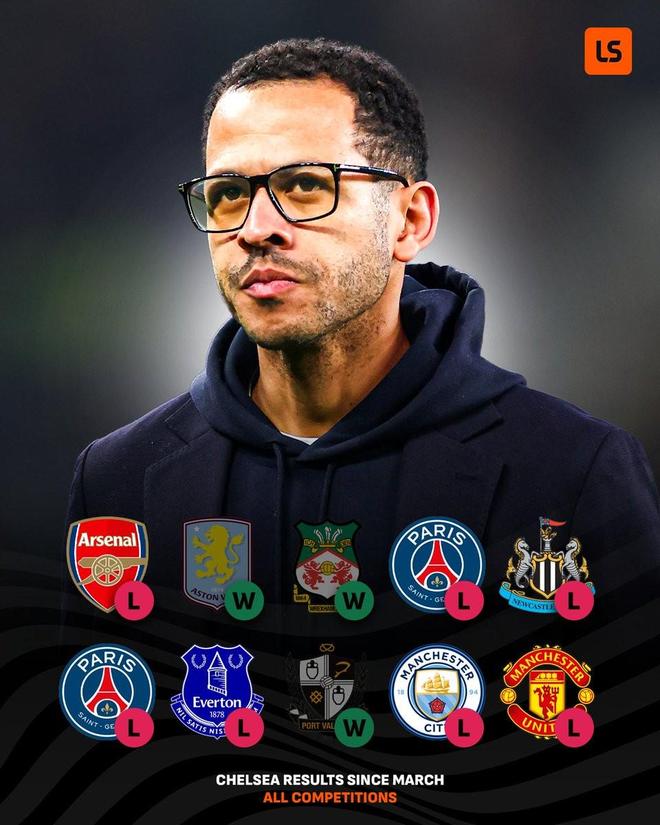 此役主场0-1输给曼联之后,切尔西自进入3月以来各项赛事10场比赛输了6场,先后输给阿森纳、巴黎圣日耳曼(2次)、纽卡斯尔联、埃弗顿、曼城和曼联。