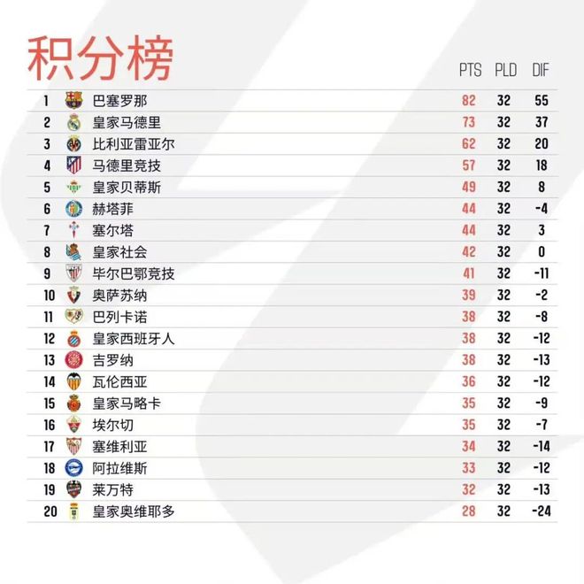 降级区方面,本轮皇家奥维耶多1比1逼平前四球队黄潜,抢到宝贵1分;莱万特则是2比0力克保级对手塞维利亚,拿到关键胜利;埃尔切则力克强敌马竞,逃离降级区。截至目前,皇家奥维耶多积28分,排名倒数第一;莱万特积32分,排名倒数第二;阿拉维斯积33分,排名倒数第三,离保级区只有1分差距。
